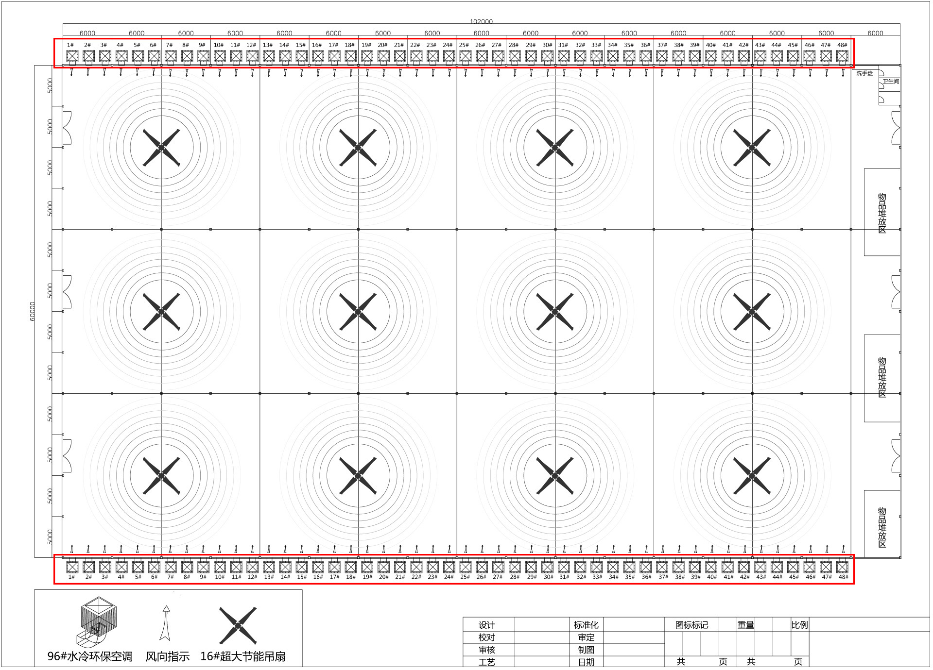 由于廠房的空間很大,所以組合空調機組運行起來很難使溫度達到設置預期溫度,因此空調將持續(xù)不斷工作,這就加大了空調的能耗,我們可以在廠房上方加裝工業(yè)大風扇,通過工業(yè)大風扇扇葉形成的氣流,由上而下成錐形往地面推動,到地面沿水平方向流動,遇到側面阻隔或鄰近風扇的水平氣流后向上推動到屋面,從而全方位、多角度、無死角強化空氣循環(huán)流通,消除溫度分層。在夏季,能夠使廠房上下層、角度等很快達到溫度平衡,使室內溫度達到預期,減少空調實際運行時間;在嚴寒冬季,使工業(yè)大風扇正反轉交替,并使用低轉速運轉,可令天花板聚焦的暖氣逐漸改變方向及時回落到地面,從而長久保持廠房內溫度平衡,大幅降低空調能耗。