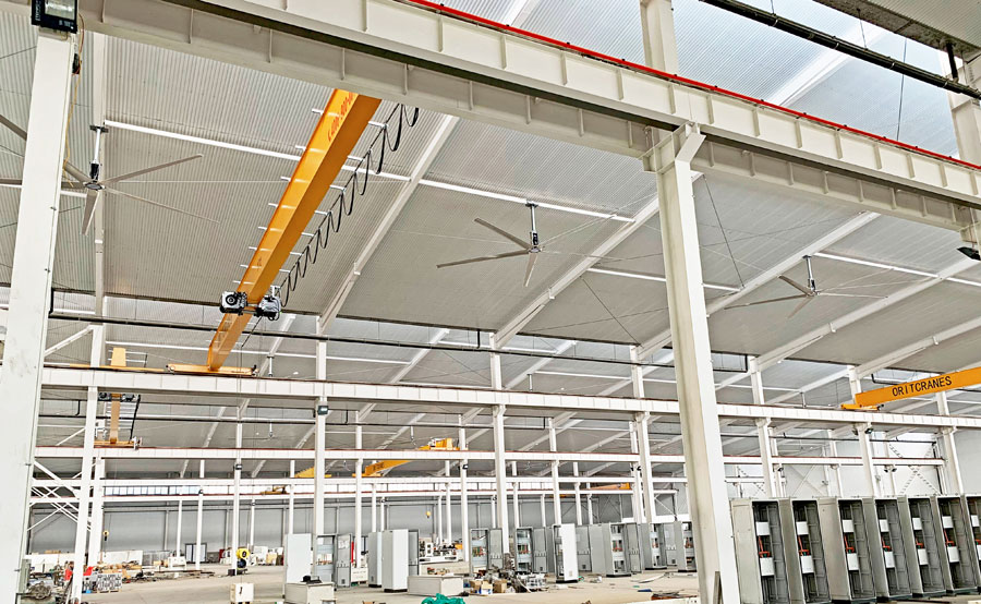 工業(yè)吊扇是一種非常大的風(fēng)扇,稱為HVLS(高風(fēng)量低轉(zhuǎn)速)風(fēng)扇,這些風(fēng)扇設(shè)計(jì)用于低速移動(dòng)大量空氣。它們通常安裝在商業(yè)或工業(yè)空間的天花板上,用于改善空氣流通、調(diào)節(jié)溫度和濕度并提高員工舒適度。工業(yè)吊扇的尺寸通常為直徑3.6至7.3米。這些風(fēng)扇通常用于大型設(shè)施,例如倉庫、配送中心和制造工廠,它們也非常適合餐廳、商店、購物中心、機(jī)場(chǎng)和車庫等商業(yè)空間。